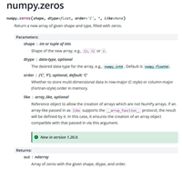NumPy zeros()函数使用小结
