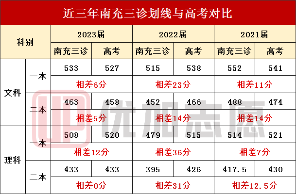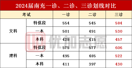 2024届南充三诊文科一本线为533分,而2024年高考一本线为527分,模考比其高了6分;