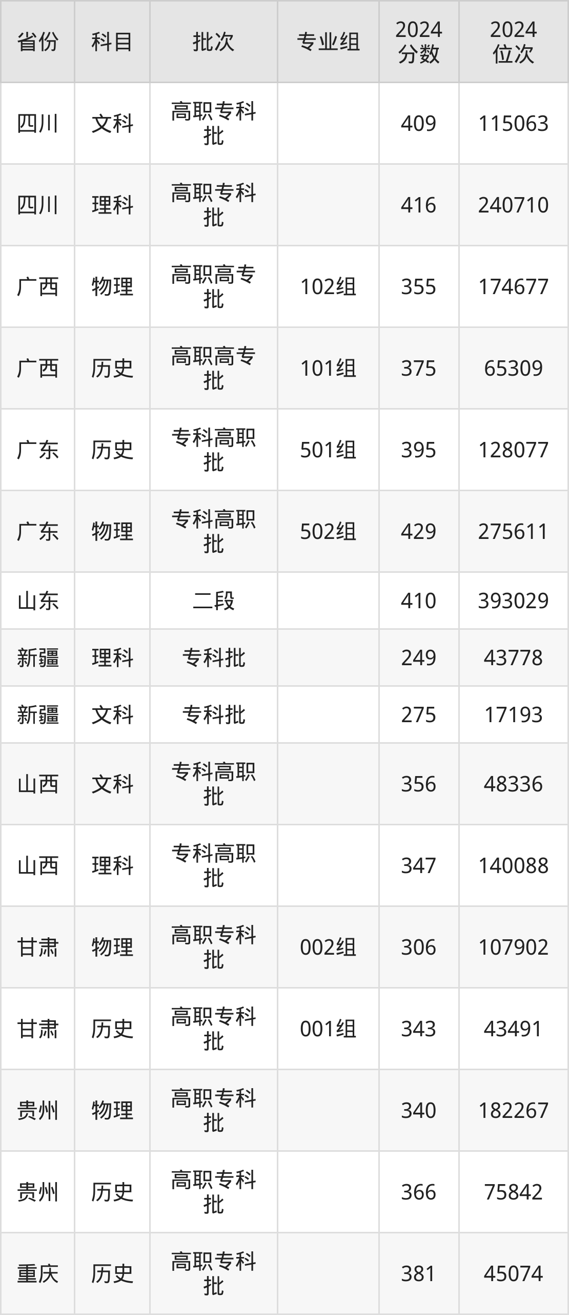 郑州澍青医学高等专科学校002组:2024年投档录取最低分为398分,录取最低位次为76262名。