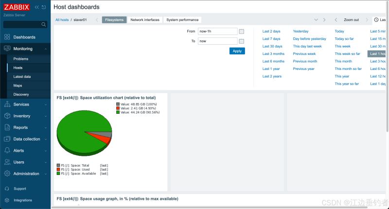 - 登录zabbix仪表板: