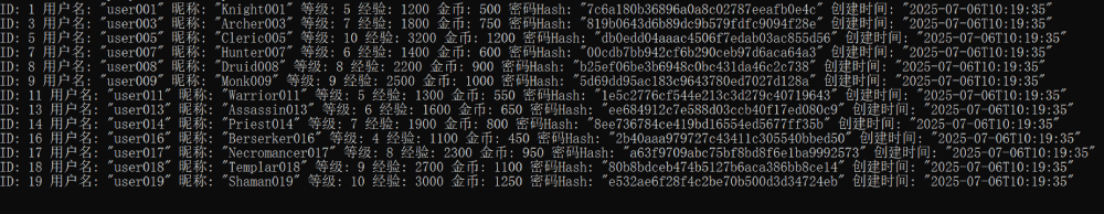('user001', md5('password1'), 'knight001', 5, 1200, 500),