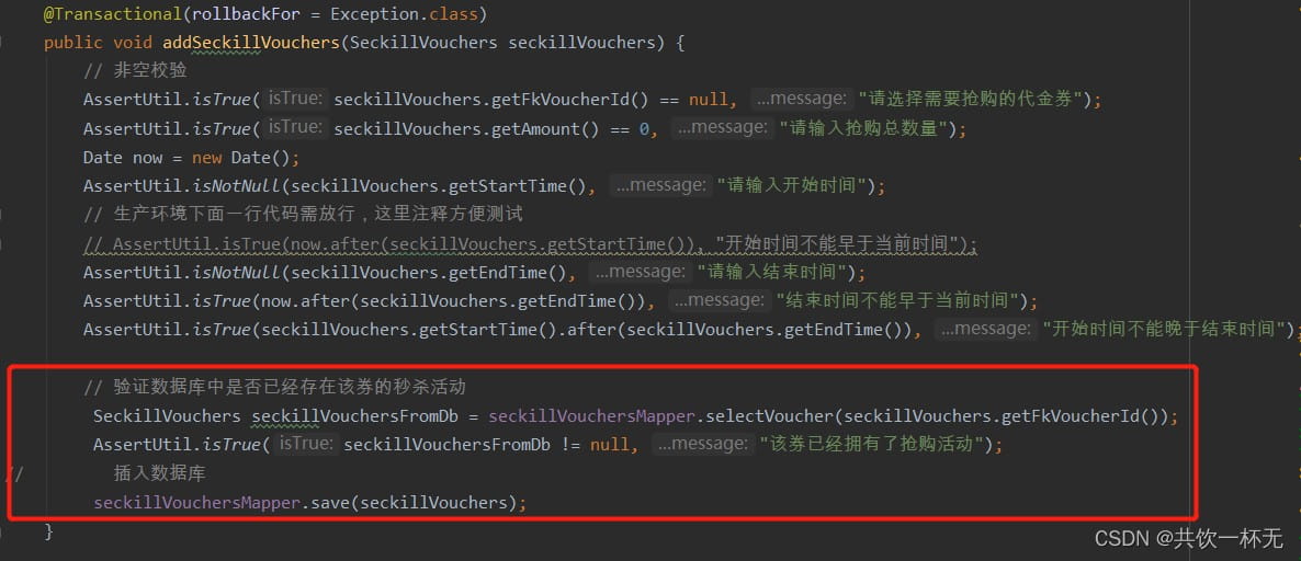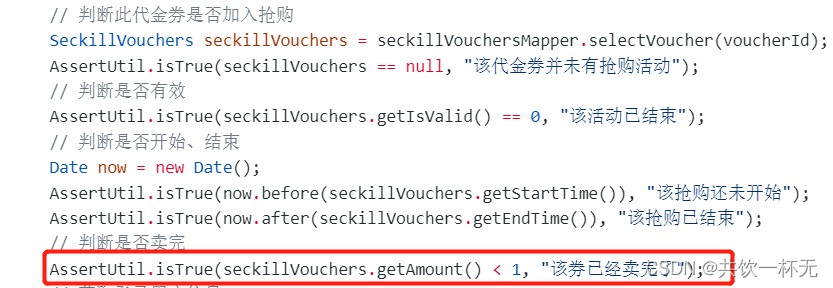 assertutil.istrue(seckillvouchers.getamount() < 1, "该券已经卖完了");