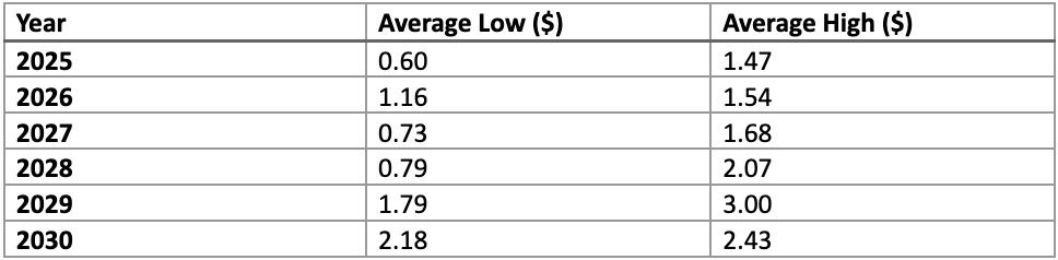 2025-2030年预测价格表