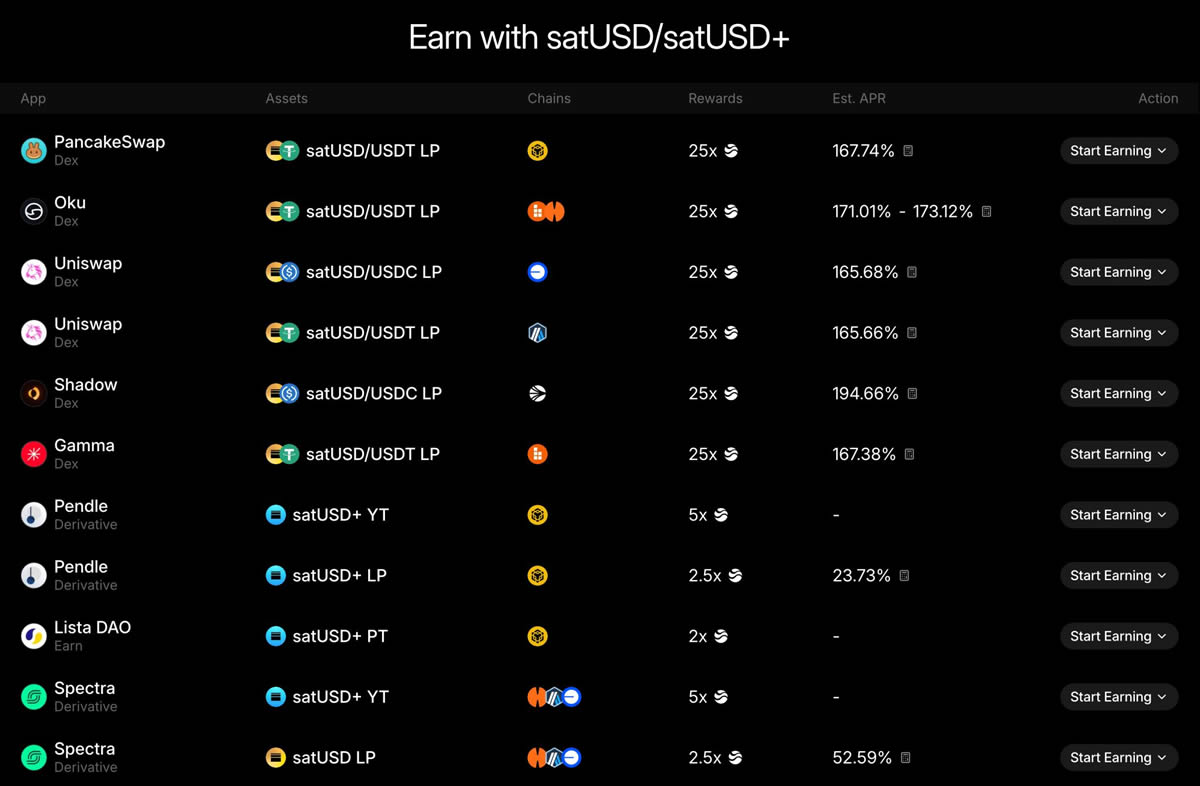 - – 稳定币应用:satusd 已经在多条链上落地,可用于交易、借贷和流动性场景,创造真实的市场需求。