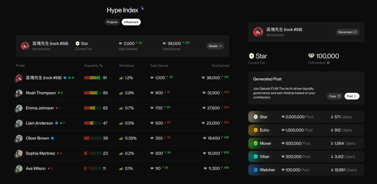 为了激励更多人参与,river 推出了 river4fun,一个游戏化的奖励系统。用户无论是质押代币、参与合作池,还是在社交媒体上互动,都能获得 river 积分。这些积分未来会兑换成 river 代币。系统采用 ai 驱动的评分机制,确保奖励发放给真实有效的行为,而不是机器人或刷量,从而让激励真正推动社区成长。