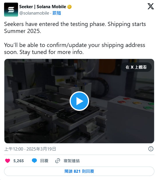 在正式宣布出货之前,solana 手机seeker曾于2025 年3 月进入最关键的测试阶段。