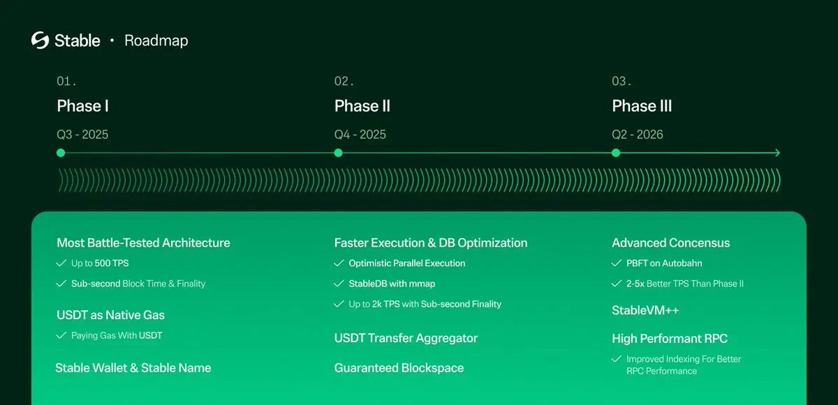 在融资方面,该专案在由bitfinex 和hack vc 领投的种子轮中筹集了2800 万美元,参投方包括franklin templeton、castle island 和usdt0。目前,stable 正处于私有测试网阶段,预计今年晚些时候会推出公共测试网。