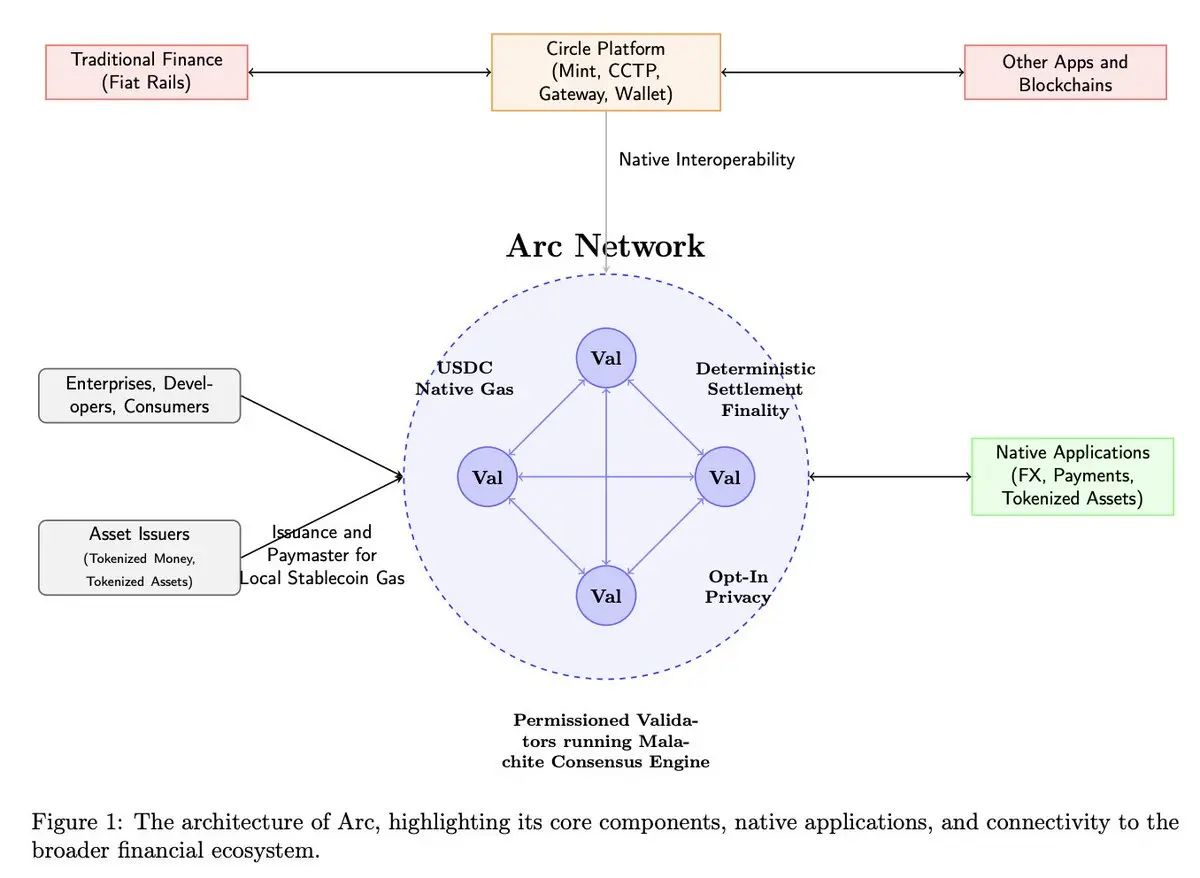 虽非追求最大去中心化,但定位于将代币化美元嵌入企业支付、外汇与财务流程。 arc 将在未来几周内启动私有测试网,预计今年秋季推出公共测试网,支援usdc 为核心,也开放给其他数位美元与代币化资产。