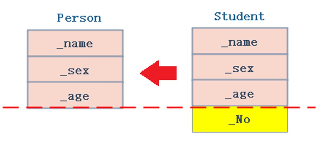 下面person是基类,也称作父类;student是派生类,也称作子类。