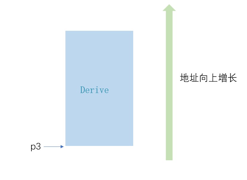 要解答这道题,我们首先来看指针p3,p3指向整个derive类: