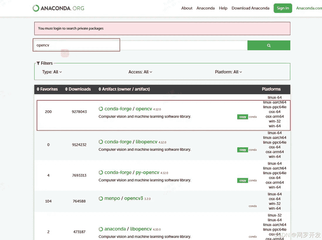 所以建议你要安装什么conda的包的时候,直接去官网搜索吧: