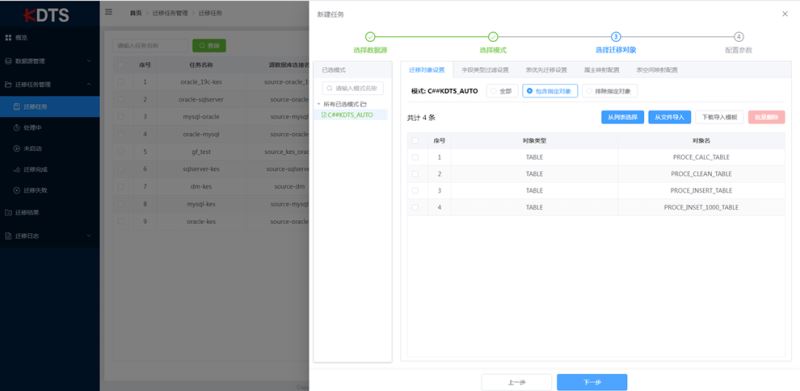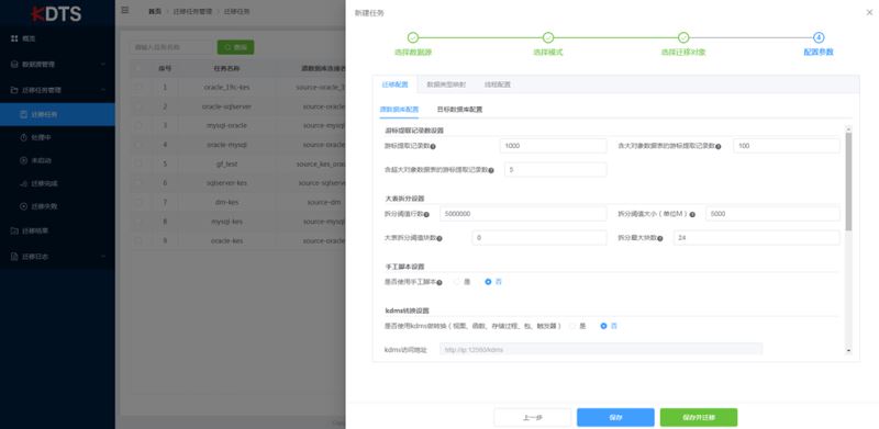 kdts 采用向导页的方式指导用户新建迁移任务,简单易用,用户依次配置“选择数据源”-“选择模