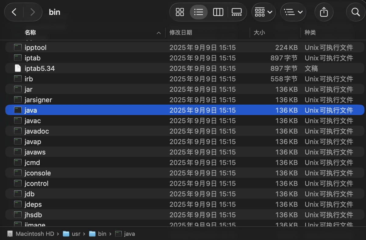 实际上是一个替身,它会指向真正的 java 安装位置。要找到真实路径,我们需要下一步。