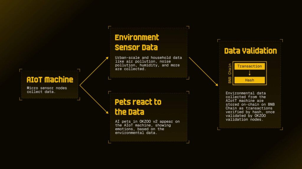 在快速发展的区块链技术世界中,okzoo作为一个革命性项目脱颖而出,架起了人工智能、物联网(iot)与去中心化网络之间的桥梁。okzoo通过其aiot(物品的人工智能)机器,开创了全球首个城市规模和街头级别的去中心化环境数据网络。在其内核,okzoo部署了名为p-mini的便携式物理设备,收集重要的环境数据,如空气质量、噪声污染和二氧化碳水平,同时为用户提供与环境条件响应的互动ai宠物陪伴。