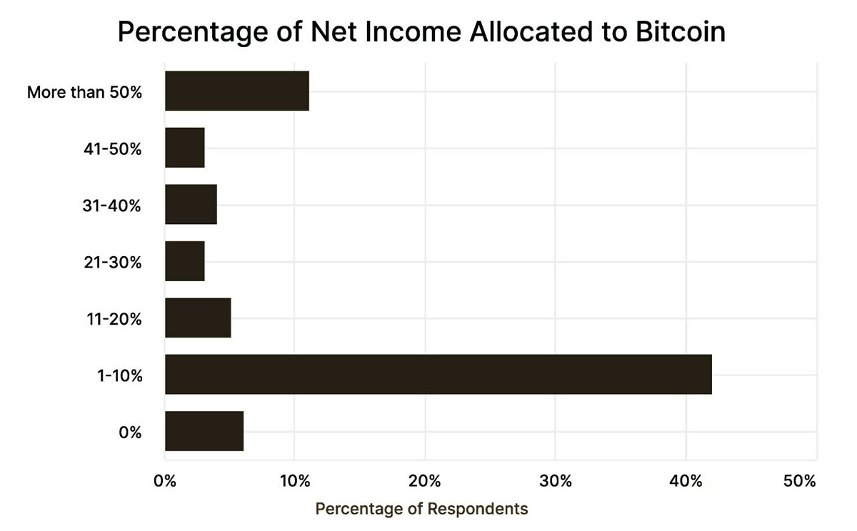 这让我想到了最后一点,即企业在比特币配置比例方面的实际操作情况。river的数据显示,许多企业配置给比特币的比例远不止假设的1%。根据 2025年7月的一项调查,river客户平均将其净利润的22%配置给比特币,中位数配置比例为10%。