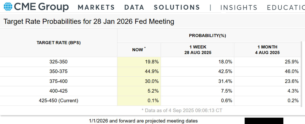cme fedwatch对2026年1月的隐含利率。来源: cme fedwatch