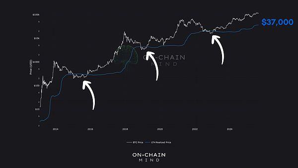 在之前的每一个周期中,lth实现价格都充当了坚实的底部。当市场价格短暂跌破这一价位时,那些时刻都标志着绝佳的长期买入机会。