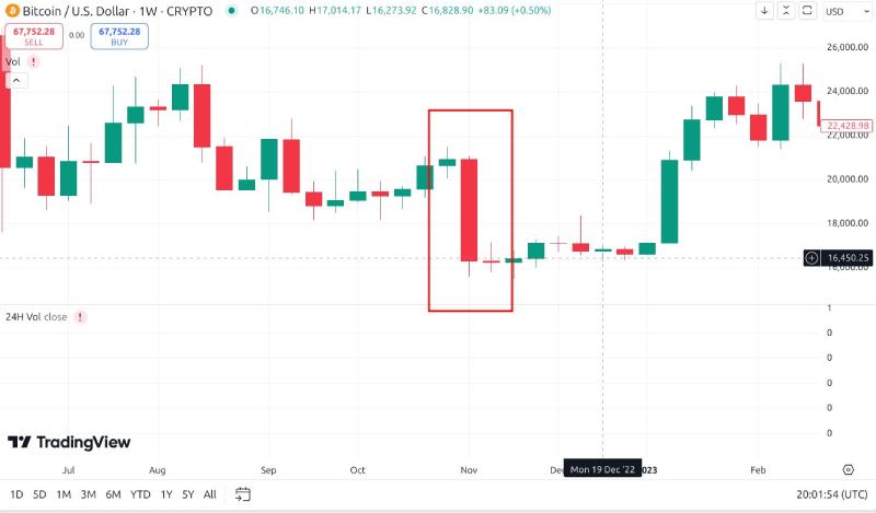 2021年末,btc价格一度达到近7万美元的历史高点(当时),随后开始暴跌。一年后,比特币价格触底,跌至15,500美元左右。