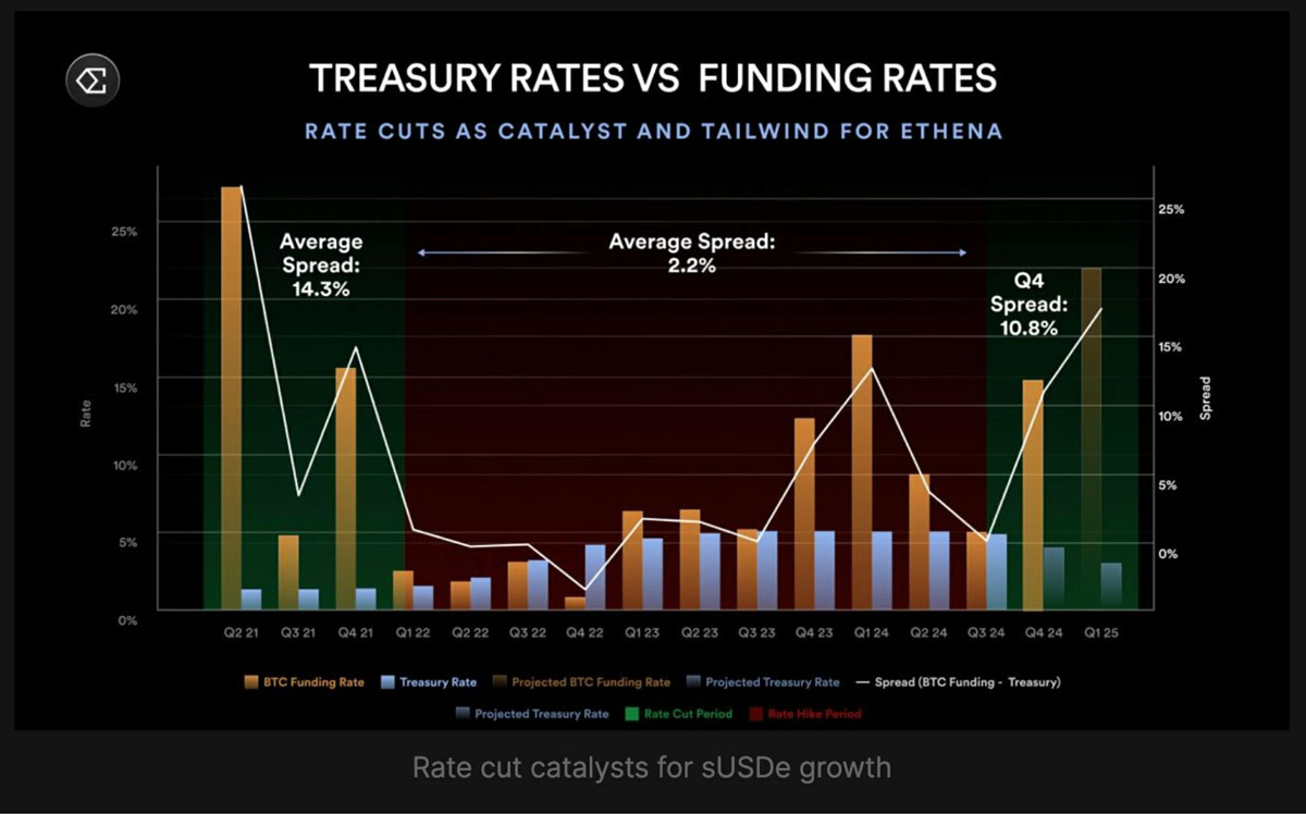 这一模式与usdc和usdt的情况相似,但时间跨度要短得多。主要的稳定币提供商花了数年时间才建立机构关系和合规框架。而ethena只用了几个月就完成了,一部分原因是监管环境已经成熟,一部分原因是其收益机会实在太诱人,不容忽视。