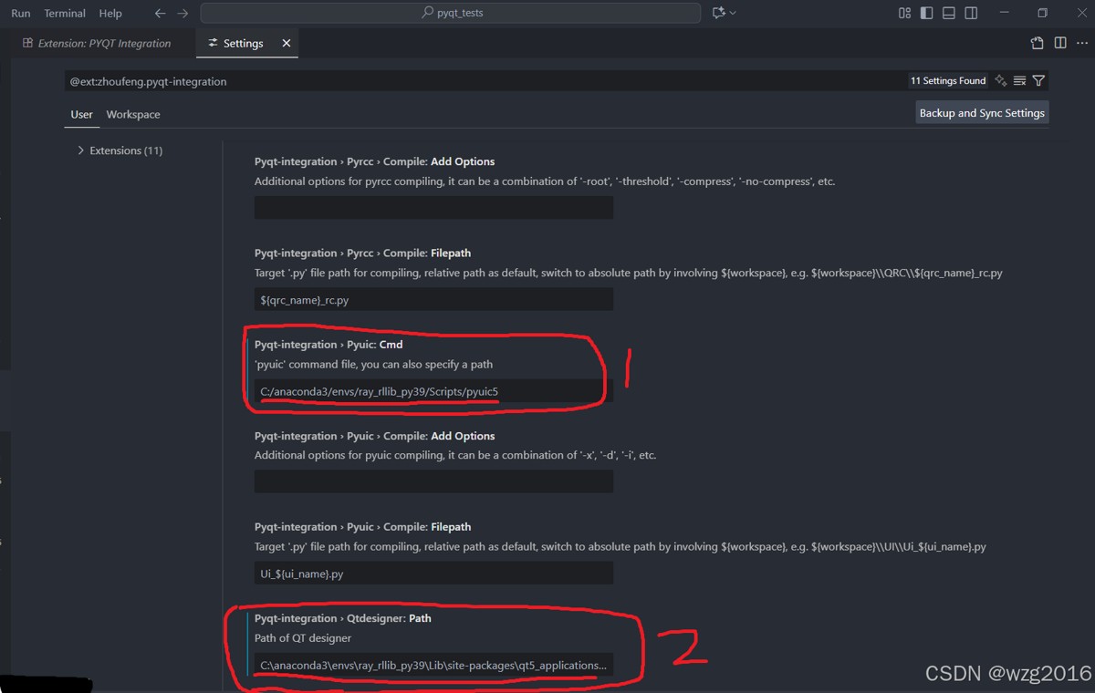 找到 “pyqt-integration > pyuic: cmd”,填入安装pyqt5的虚拟环境中pyuic的绝对路径,如下:
