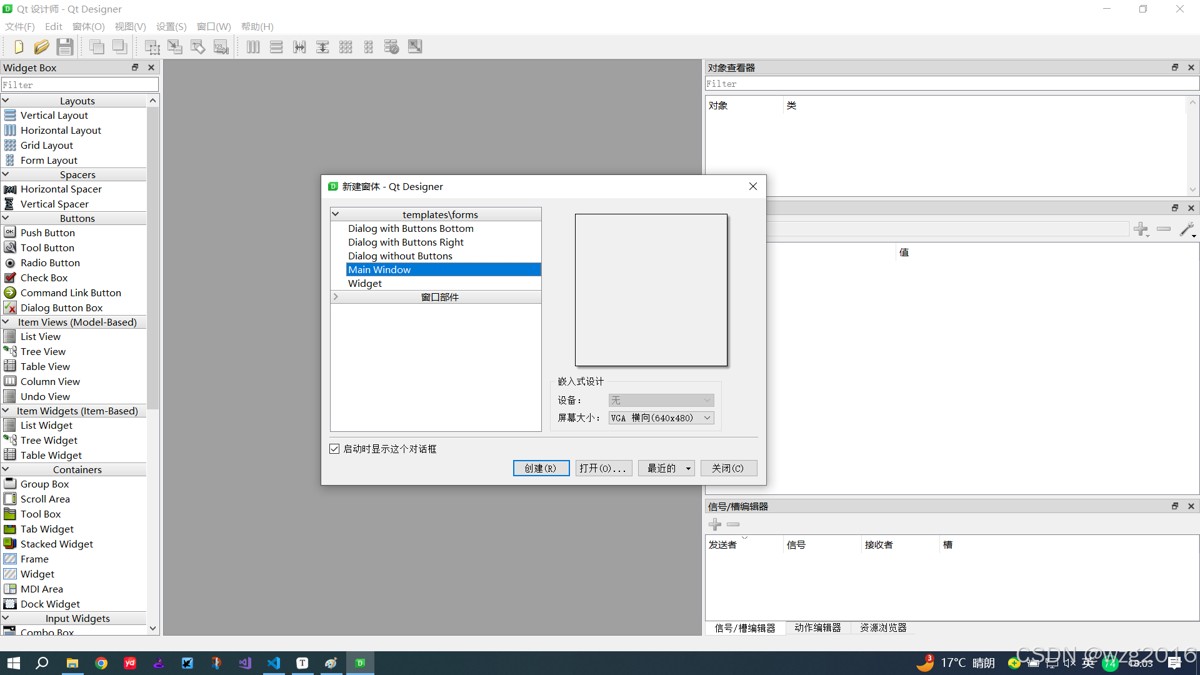 vscode自动调用qt-designer打开,创建并打开一个.ui文件,这里以创建 “main window”为例,介绍后续使用方法。