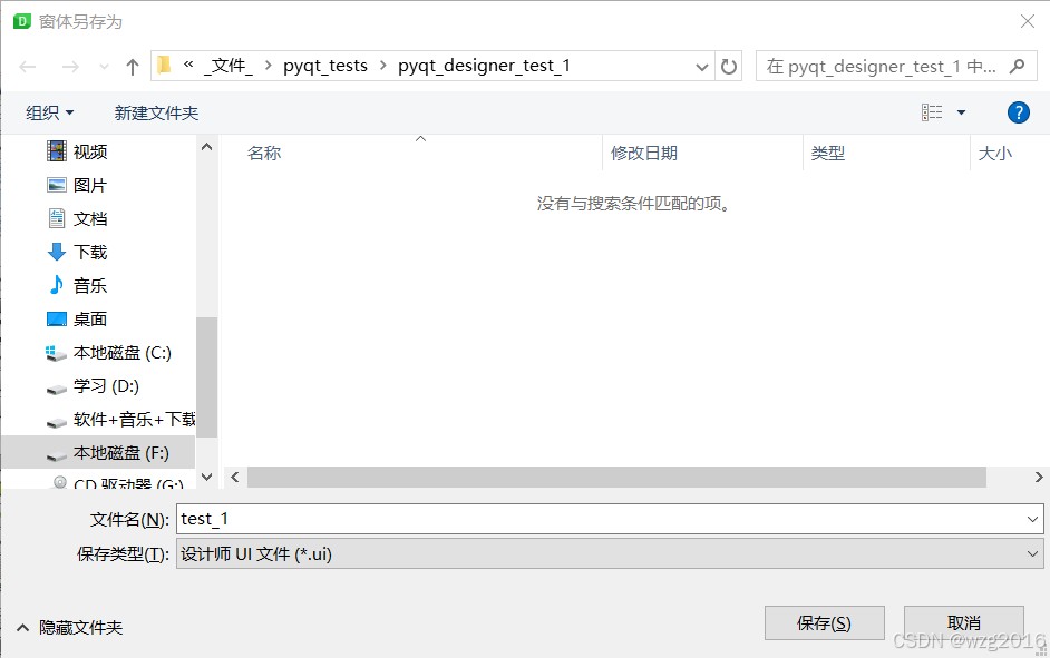 创建一个 “main window”,从左侧拖进来一个 button之后,“ctrl+s"保存,弹出如下对话框,保存为 .ui 文件