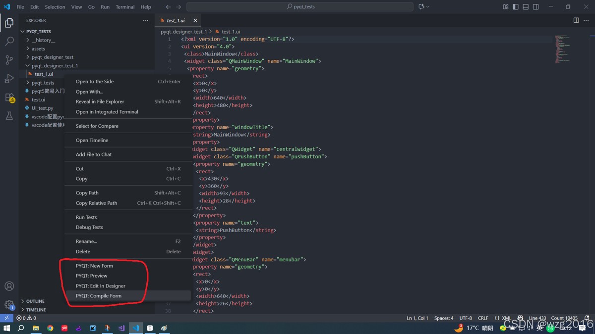 回到 vscode, 在刚刚保存的 .ui 文件上,鼠标右键,