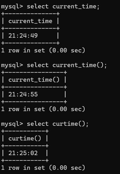 • current_time和current_time([fsp]) 是curtime() 的同义词⽤于获取当前时间