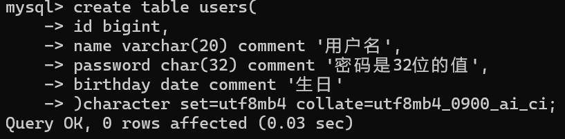 ) [engine 存储引擎] [character set 字符集] [collate 排序规则];