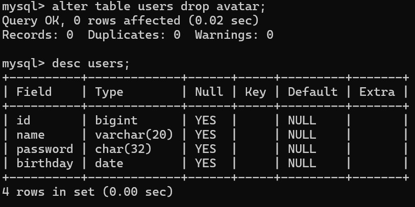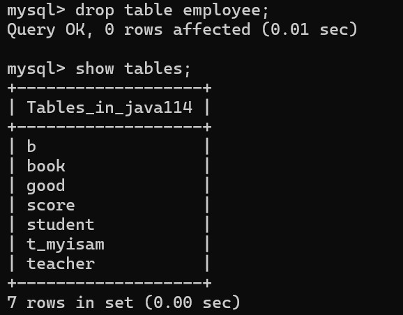 - ⼀次可以删除多个表,表与表之间⽤逗号隔开