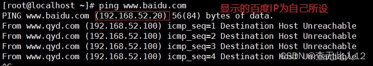 /etc/nsswitch.conf文件中files在dns前 查看百度的ip地址会发现百度的ip地址为自己随机设置的ip