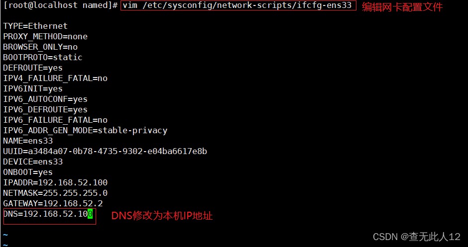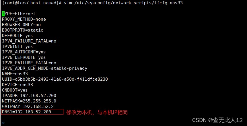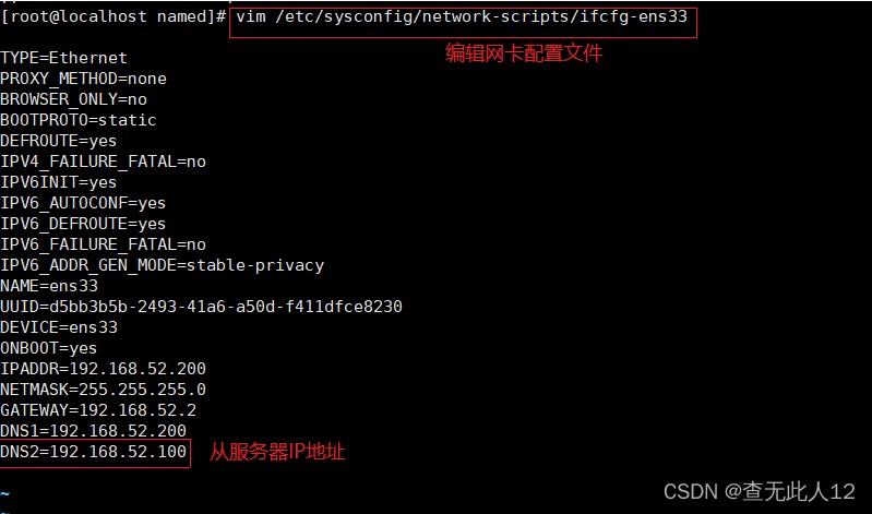 编辑网卡配置文件,将从域名服务器增加为第二台dns服务器