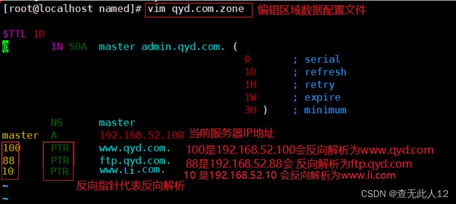根据地址解析的方向不同,dns区域相应地分为正向区域(包含域名到ip地址的解析记录)和反向区域(包含ip地址到域名的解析记录)。