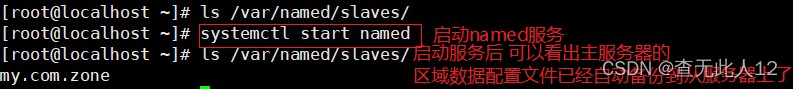 启动named服务,自动复制主服务器中的区域数据配置文件