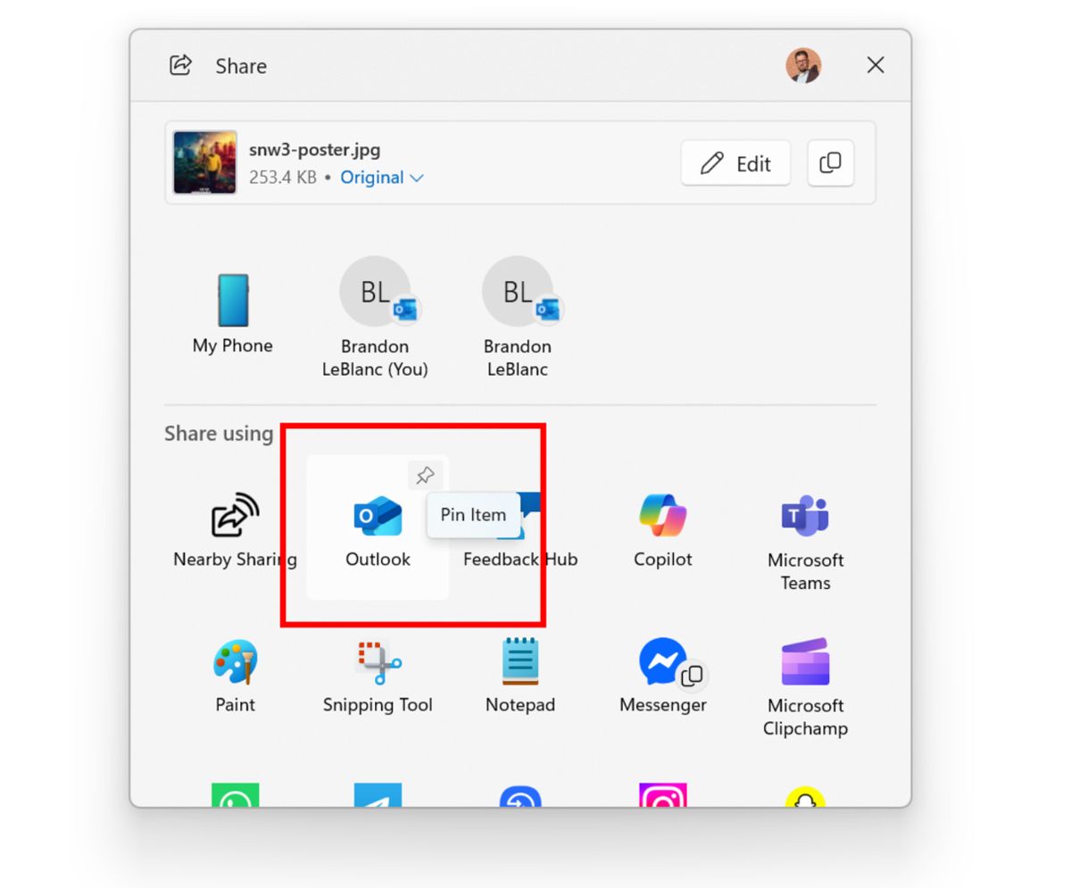 windows 共享窗口现在支持固定常用应用