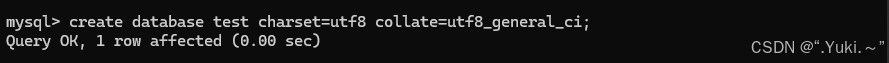 ,执行后查询结果为query ok, 1 row affected (0.00 sec)