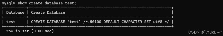 mysql> show create database mytest; | database | create | mysql | create database `mytest` /*!40100 default character set utf8 */ |