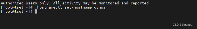 将文件中原有内容替换为目标主机名(例如 qyhua),保存并退出。