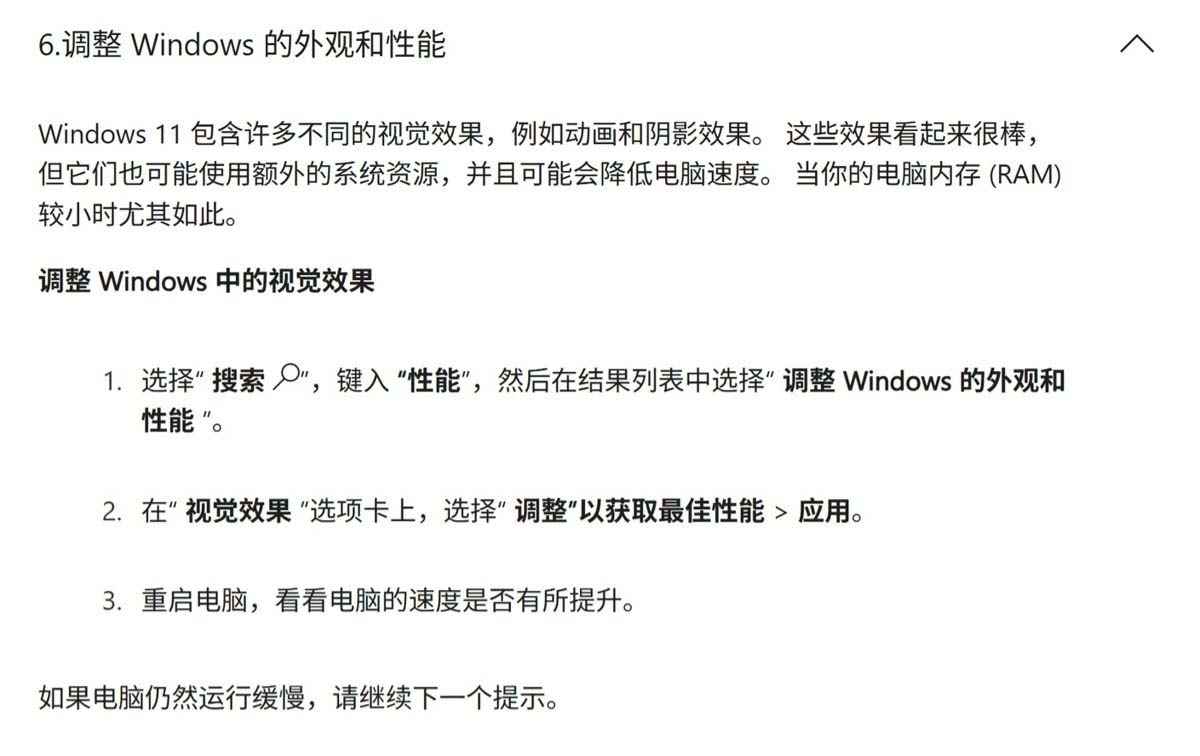 - 第二个影响性能的因素是 windows 系统内置的视觉效果。为了提供更现代、更美观的用户界面,windows 11 和 10 中包含了大量的动画、淡入淡出及阴影效果。