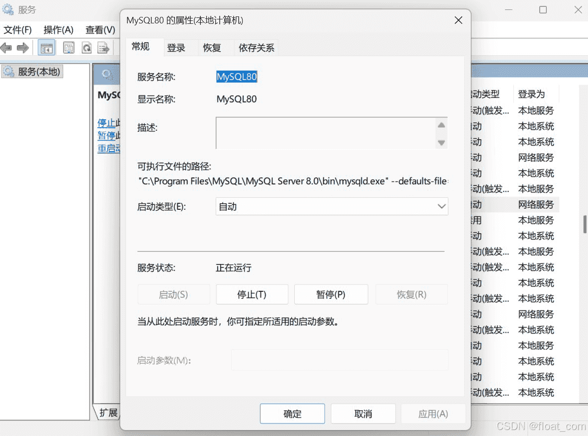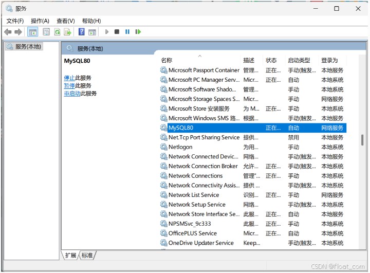 注意这里是mysql80的原因是在安装时默认名称为mysql80(当然你也可以自己改,不过不建议)