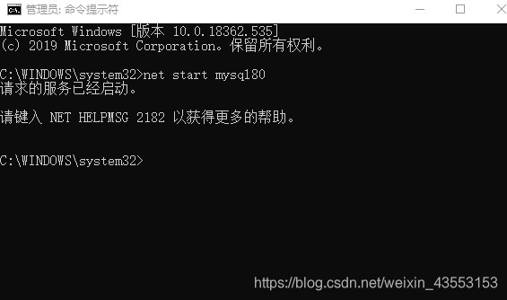 - 然后就可以使用cmd控制mysql了,cmd必须是以管理员身份打开。
