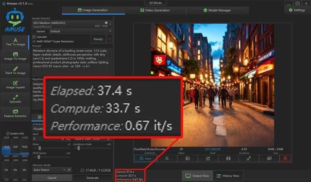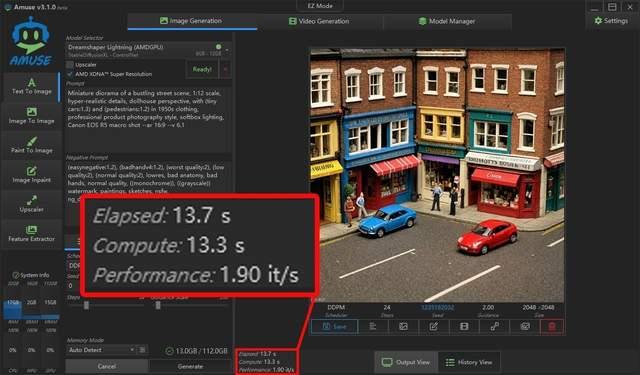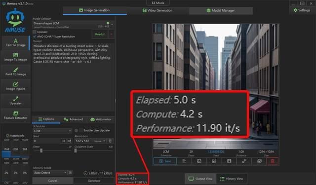 同时,amd与amuse ai合作,还为锐龙aipc打造了专门的aigc工具amuse,通过它你可以快速部署适配amd锐龙平台的aigc大模型,除了可以做文生图、图生图,还可以做文生视频,而且支持调用amd npu进行超分辨率辅助或独立采用npu来完成图像生成,是目前非常好用且易用的aigc应用。