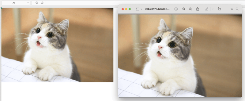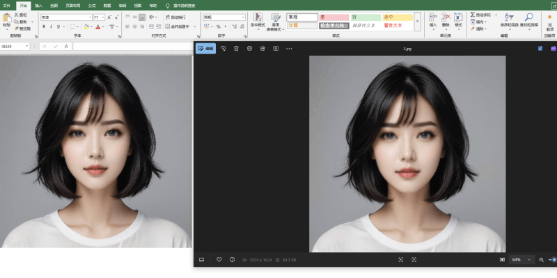 先来看看成品效果吧!左边是原图,右边是生成的 excel 艺术(每个单元格就是一个像素)