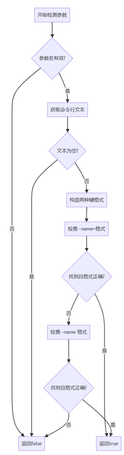 此函数能够准确区分--name和--name2等相似参数,避免误匹配,确保检测的准确性。