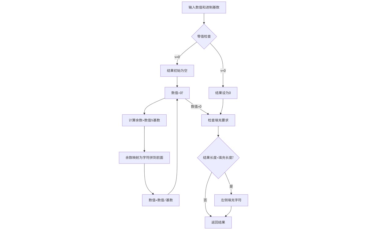 - 特殊情况处理:数值为0时直接返回"0"