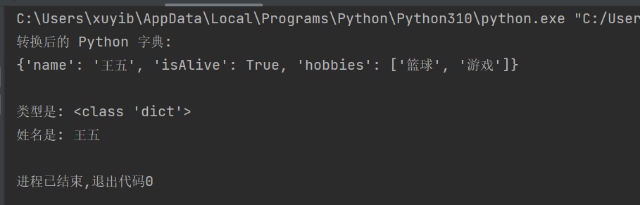 print("转换后的 python 字典:")
