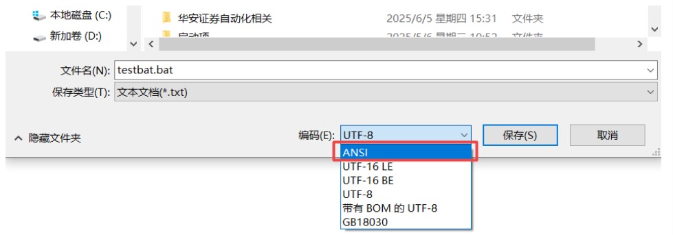 另存为的时候,选择编码集ansi