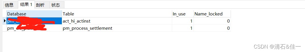 字段in_use表示有多少线程在使用这张表,字段name_locked表示表格是否被锁,0代表锁定状态