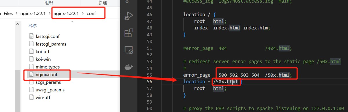 如果想要自定义html文件路径,就在配置文件nginx.conf文件中修改。