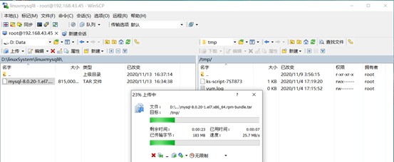 上传已下载mysql的rpm软件包到安装的linux服务器上。